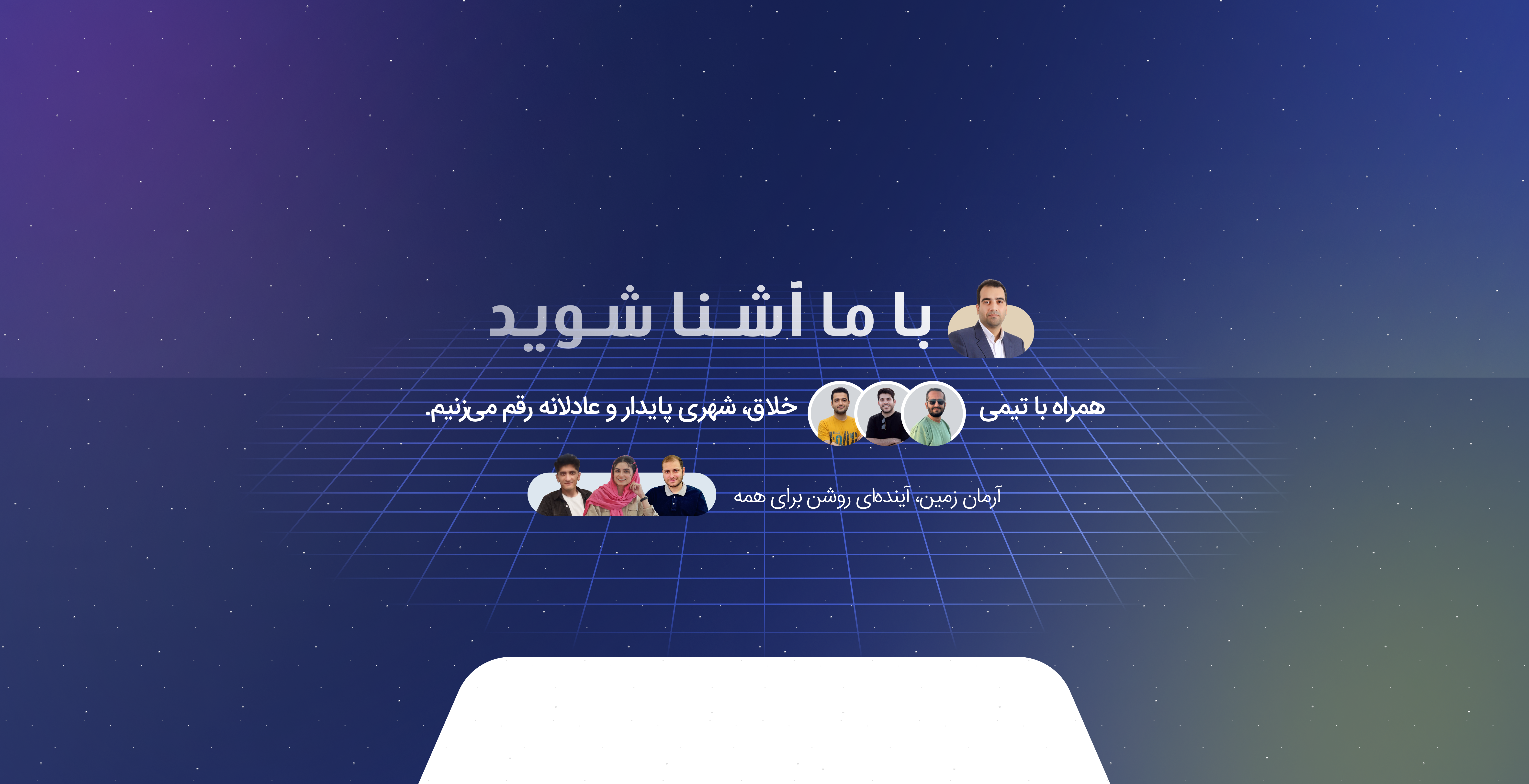 تیم فراسوی رشد آرمان زمین متشکل از جمعی از متخصصان، پژوهشگران و توسعهدهندگان جوان و باتجربه است که با پیشینههای علمی متنوع در حوزههایی چون مدیریت شهری، حملونقل و ترافیک، تحلیل داده، نرمافزار و هوشمندسازی شهری در کنار یکدیگر فعالیت میکنند. این تنوع تخصصی به ما کمک میکند تا مسائل پیچیده شهری را از زوایای مختلف بررسی کرده و راهکارهایی جامع و کارآمد ارائه دهیم. تعهد به کیفیت، یادگیری مستمر و مسئولیتپذیری اجتماعی از ارزشهایی است که تیم ما بر پایه آن شکل گرفته است. ما با نگاهی آیندهمحور و با تکیه بر دانش روز، میکوشیم راهکارهایی بسازیم که نهتنها پاسخگوی نیازهای امروز شهرها باشند، بلکه مسیر توسعهای هوشمند، ایمن و پایدار را برای آینده هموار کنند.